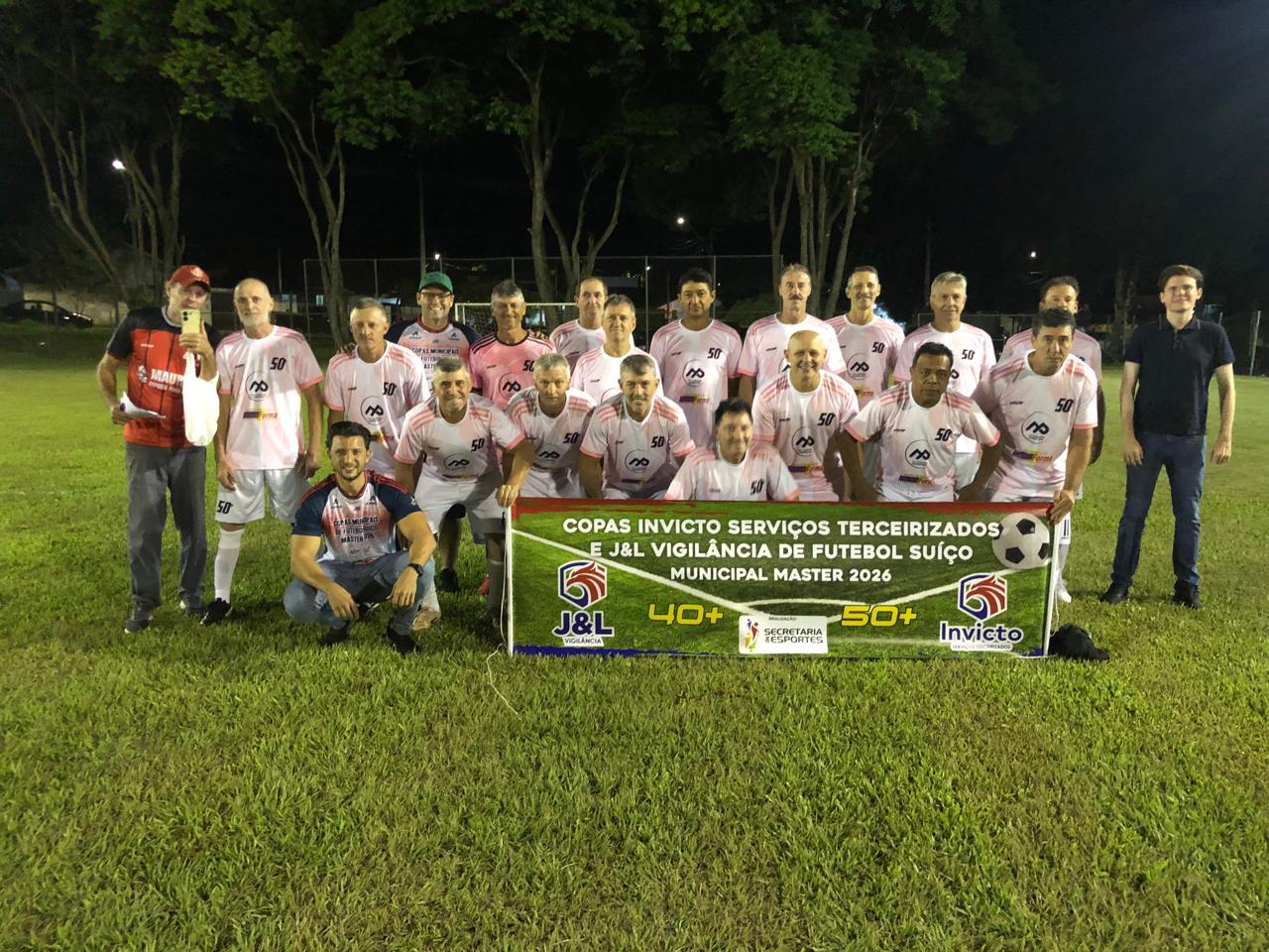Teve início na noite desta quinta-feira (09), no Campo da Afitra, as Copas Invicto Serviços Terceirizados e J&L Vigilância de Futebol Suíço Municipal Máster 2026, nas categorias 40+ e 50+.
