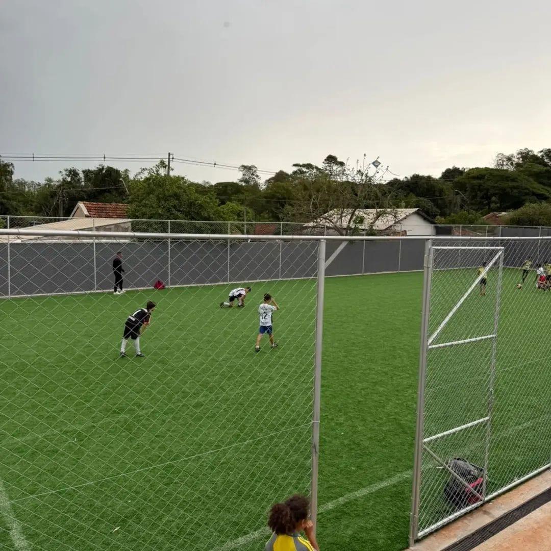 A nova praça é equipada com quadra de grama sintética, parquinho infantil e academia ao ar livre, oferecendo à população um ambiente completo para lazer, prática esportiva e integração familiar.